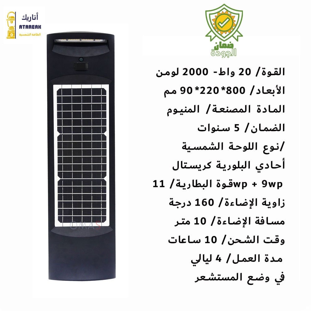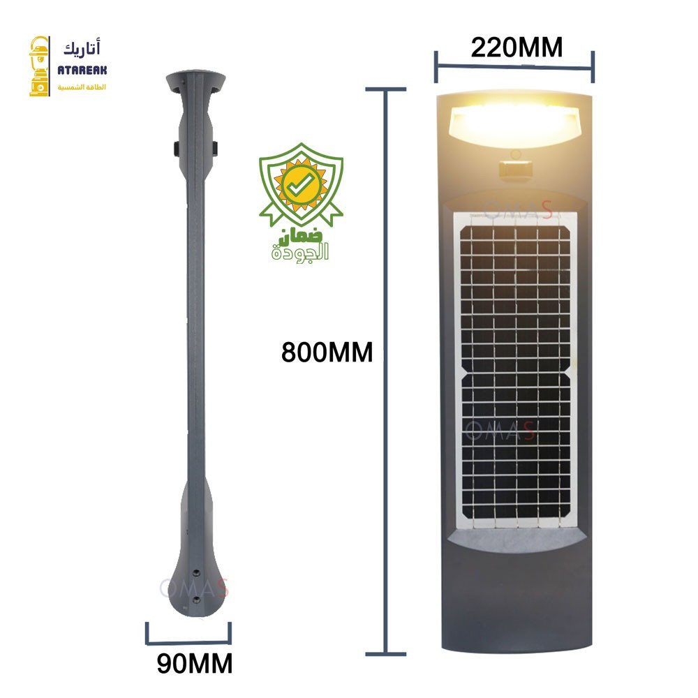 توفير الطاقة - قم بخفض فاتورة الكهرباء بنسبة تصل إلى 75٪ عن طريق استبدال التركيبات التقليدية الحالية بإضاءة omas لانتظار السيارات والساحات والحدائق والممرات ، مما يُلغي الحاجة إلى التوصيلات الكهربائية.