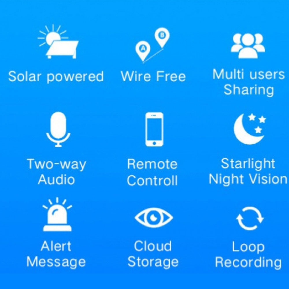 - تفاعل فوري في اكتشاف الحركة: تم تجهيز كاميرا الأمان الشمسية بمُستشعر حركة يرصُد الحركة البشرية بحساسية شديدة. عند تشغيل مستشعر حركة الكاميرا الخارجية للأمان ، ستتلقى تنبيهًا فوريًا على الهاتف مباشرة، وستكون قادرًا على عرض ما يحدث ، وتسجيل مقاطع فيديو (8 ثوان) على السحابة أو بطاقة SD. حساسية حركة قابلة للتعديل لتجنب الإنذارات الكاذبة التي تسببها أشياء أخرى. مما يجعل كاميرا الأمان التي تعمل بالطاقة الشمسية أكثر ذكاءً لالتقاط ما تهتم به حقًا.